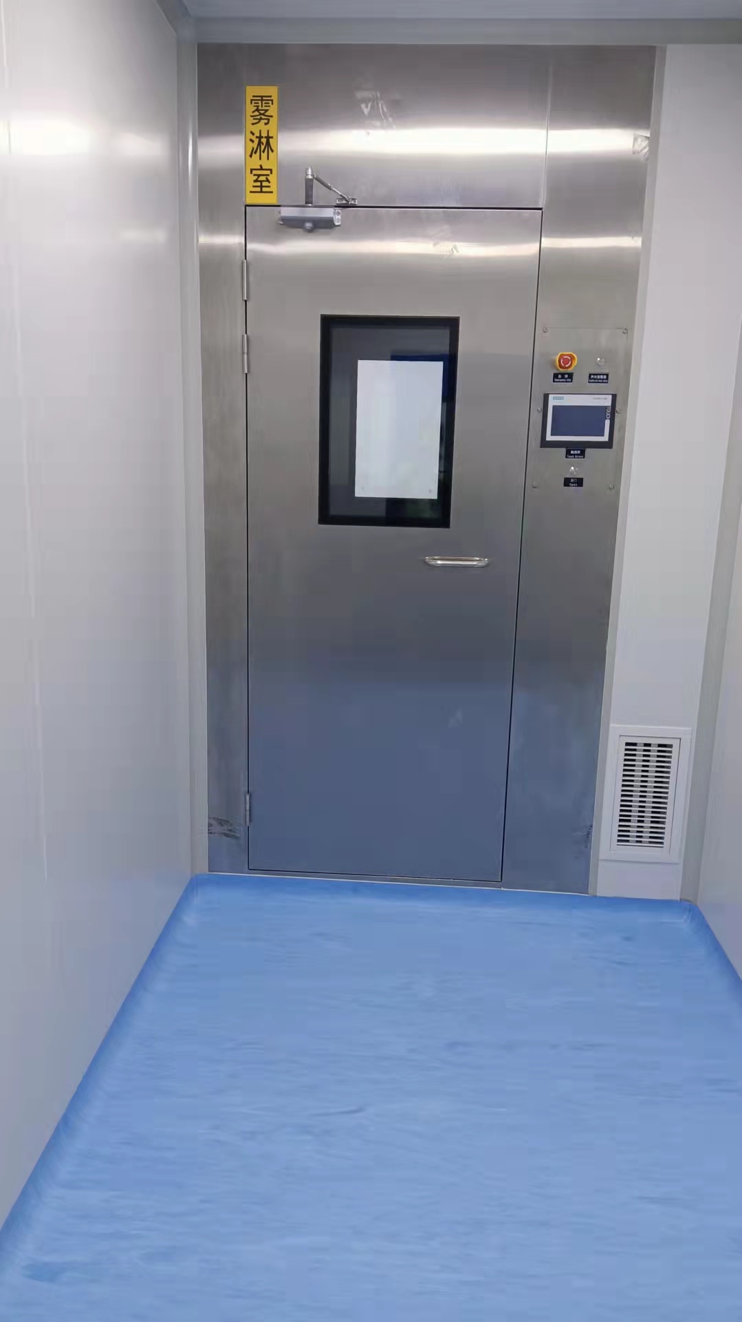 雾淋室用于实验室或车间等特殊环境下,为确保生产过程中或生产结束后,人员离开车间时,通过雾淋去除洁净服表面粘附的活性或毒性粉尘颗粒的设备。